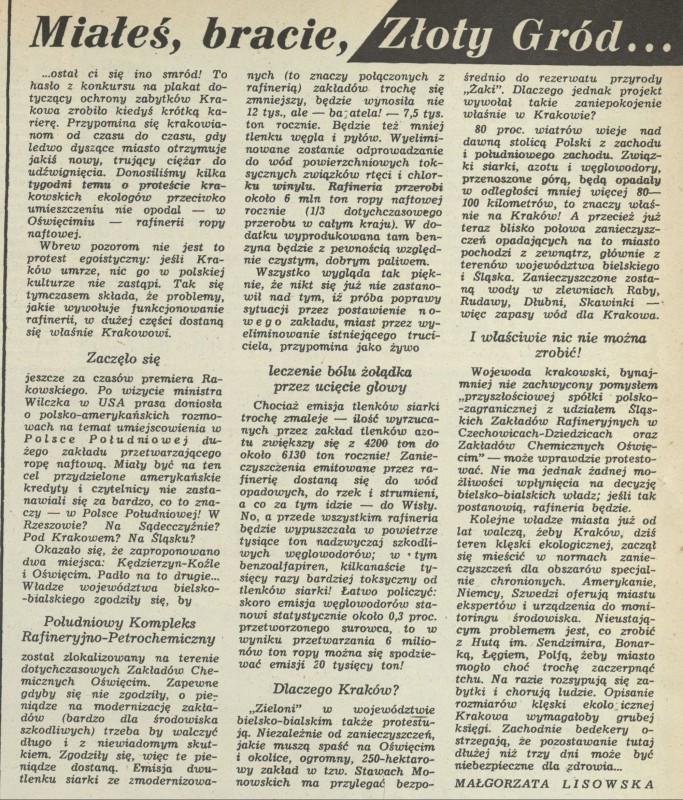 Archiwum / Artykuł nr 2379 (23/1991) 01/10 Podziel się Tytuł Miałeś, bracie, Złoty Gród... Autor Małgorzata Lisowska Kategoria Artykuł Artykuł z numeru 2379 (2380/1991) Data wydania 27 stycznia 1991 Tagi Kraków