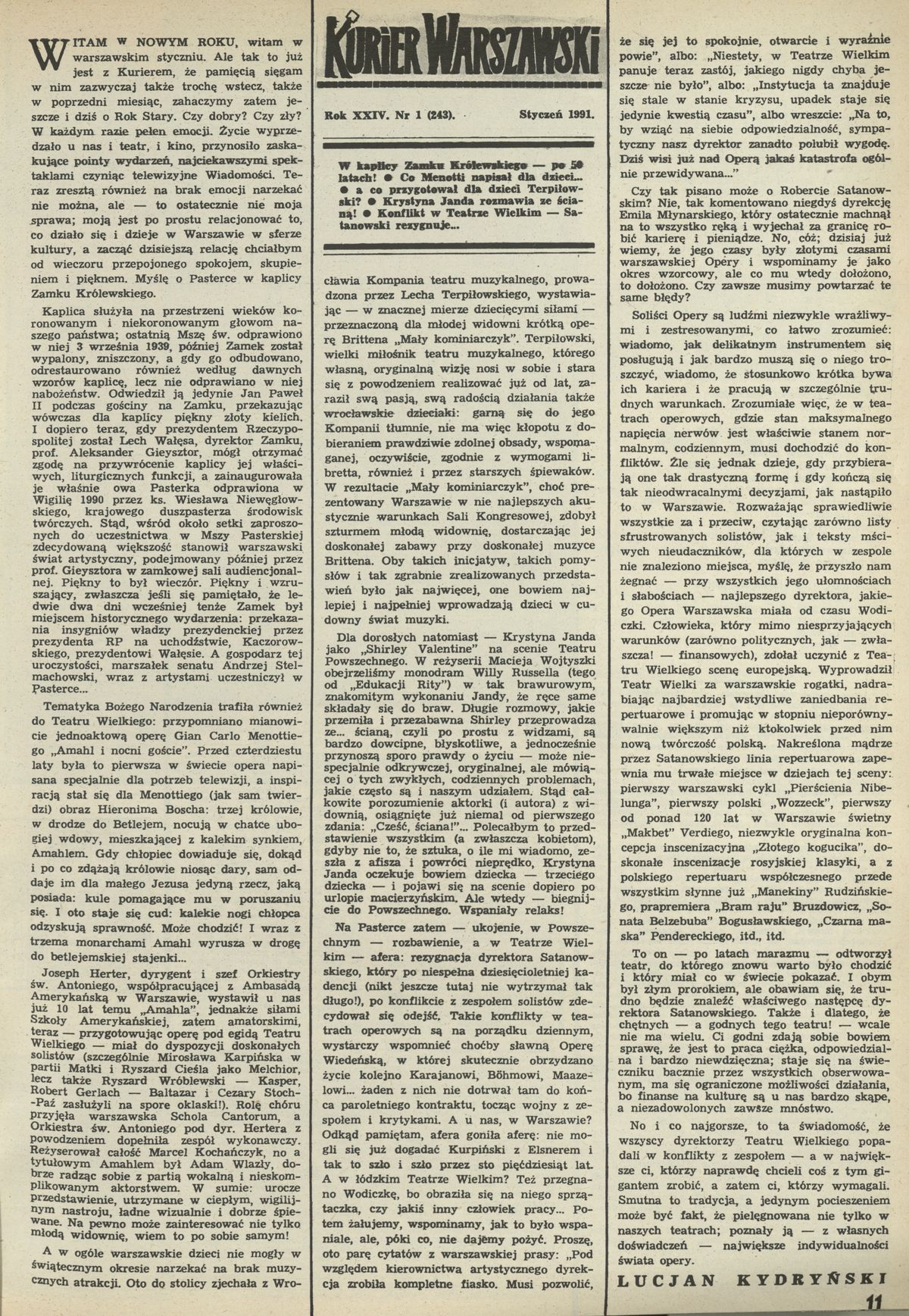 Archiwum / Kurier Warszawski nr 2379 (23/1991) 15/122 Podziel się Tytuł Kurier Warszawski Autor Lucjan Kydryński Rubryka Kurier Warszawski Artykuł z numeru 2379 (2380/1991) Data wydania 27 stycznia 1991