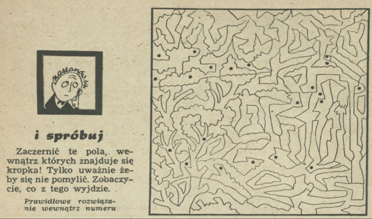 Archiwum / Zastanów się nr 658 (47/1957) 07/45 Podziel się Tytuł Zastanów się i spróbuj zaczernić pola Rubryka Zastanów się Artykuł z numeru 658 (47/1957) Data wydania 17 listopada 1957 Tagi zagadka zgadywanka rysunek