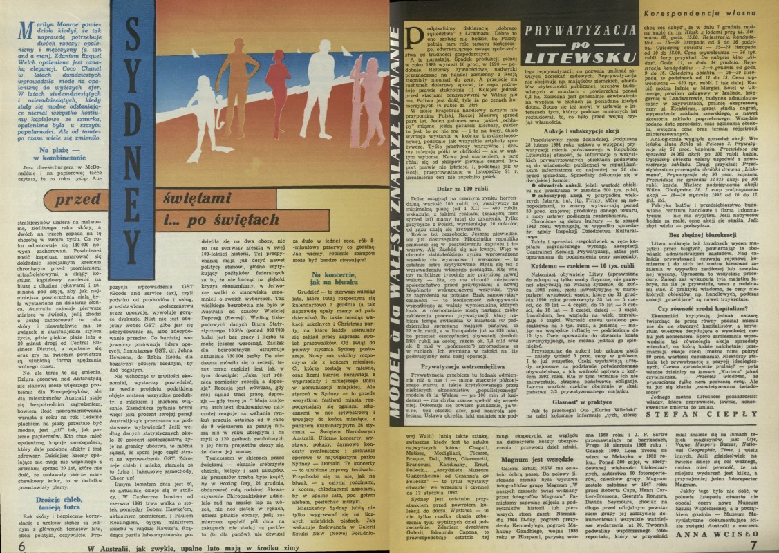 Archiwum / Reportaż nr 2432 (24/1992) 28/72 Podziel się Tytuł Sydney - przed świętami i po świętach Autor Anna Wcisło Kategoria Reportaż Artykuł z numeru 2432 (2433/1992) Data wydania 2 lutego 1992 Tagi Sydney