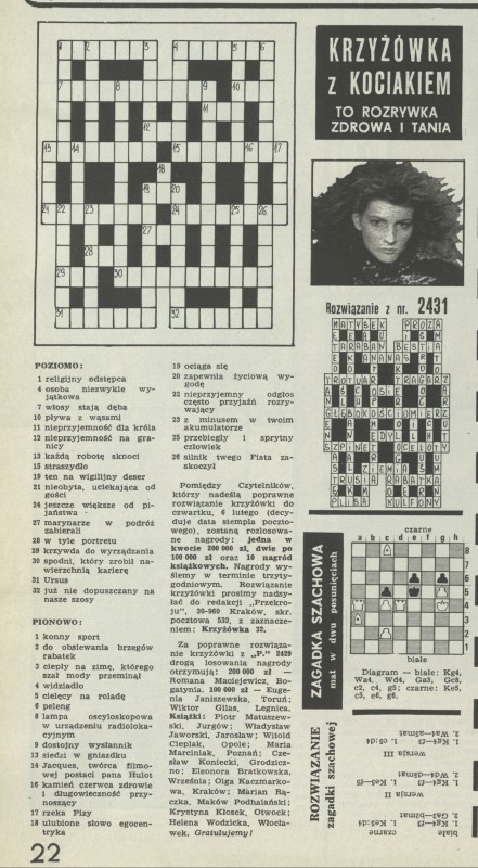 Archiwum / Krzyżówka z kociakiem nr 2432 (24/1992) 05/47 Podziel się Tytuł Krzyżówka z kociakiem Rubryka Krzyżówka z kociakiem Artykuł z numeru 2432 (2433/1992) Data wydania 2 lutego 1992