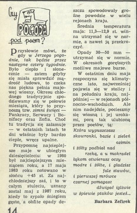 Archiwum / Czy pogoda pod psem? nr 2393 (23/1991) 554/4853 Podziel się Tytuł Czy pogoda pod psem? Autor Barbara Zefirek Rubryka Czy pogoda pod psem? Artykuł z numeru 2393 (2394/1991) Data wydania 5 maja 1991 Tagi pogoda meteorologia