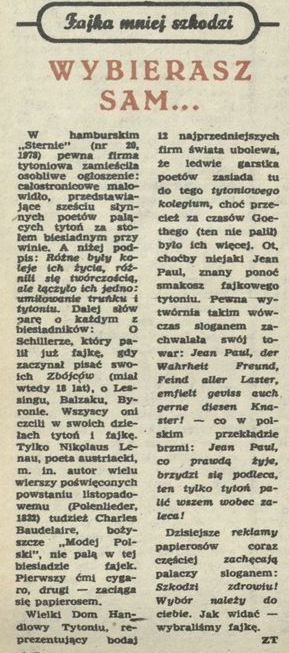 Archiwum / Fajka mniej szkodzi nr 2180 (12/1987) 77/154 Podziel się Tytuł Fajka mniej szkodzi Autor Zbigniew Turek Rubryka Fajka mniej szkodzi Artykuł z numeru 2180 (12/1987) Data wydania 22 marca 1987 Tagi fajka fajczarze palenie