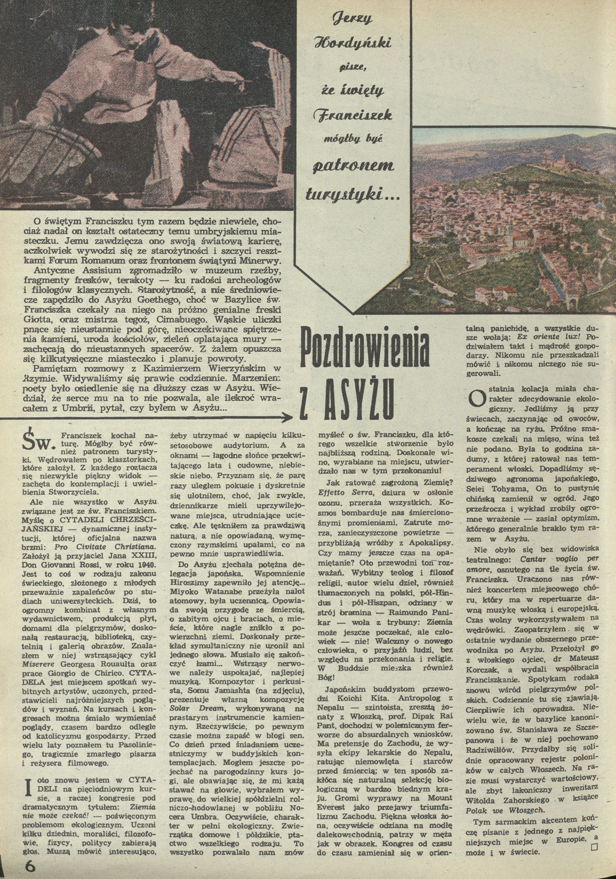 Archiwum / Felieton nr 2363 (23/1990) 73/79 Podziel się Tytuł Pozdrowienia z Asyżu Autor Jerzy Hordyński Kategoria Felieton Artykuł z numeru 2363 (2364/1990) Data wydania 7 października 1990 Tagi Włochy podróż