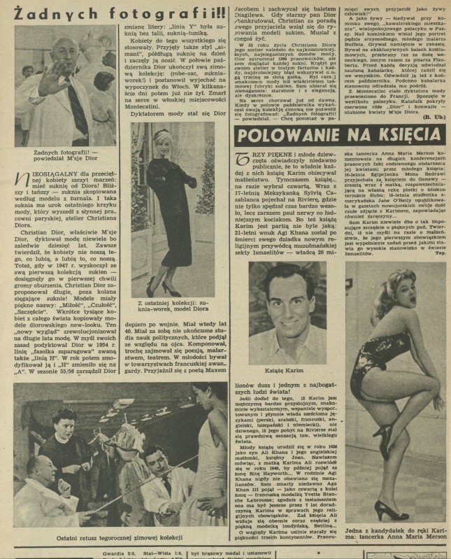 Archiwum / Artykuł nr 658 (47/1957) 1/5 Podziel się Tytuł Żadnych fotografii!! Autor B. Ubryk Kategoria Artykuł Artykuł z numeru 658 (47/1957) Data wydania 17 listopada 1957 Tagi dior