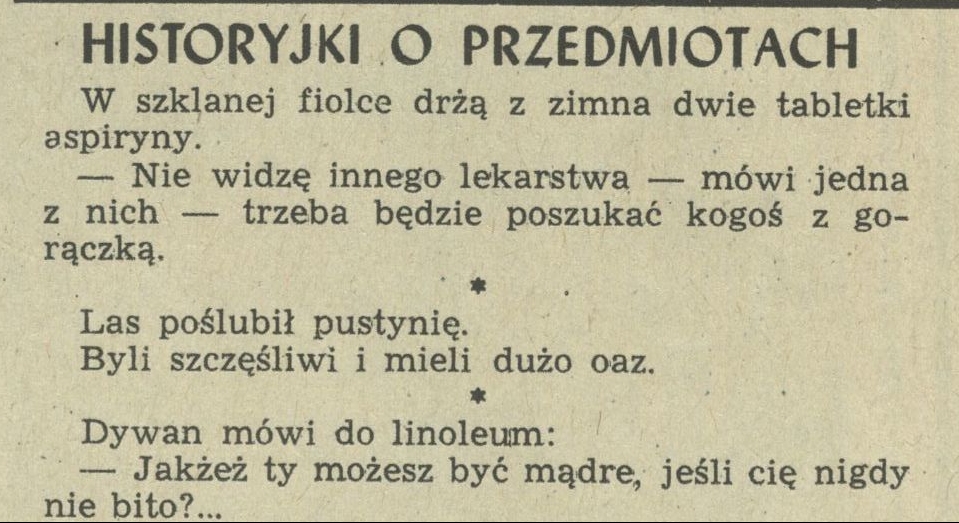 Archiwum / Rozmaitości [old] nr 658 (47/1957) 49/569 Podziel się Tytuł Historyjki o przedmiotach Rubryka Rozmaitości [old] Artykuł z numeru 658 (47/1957) Data wydania 17 listopada 1957