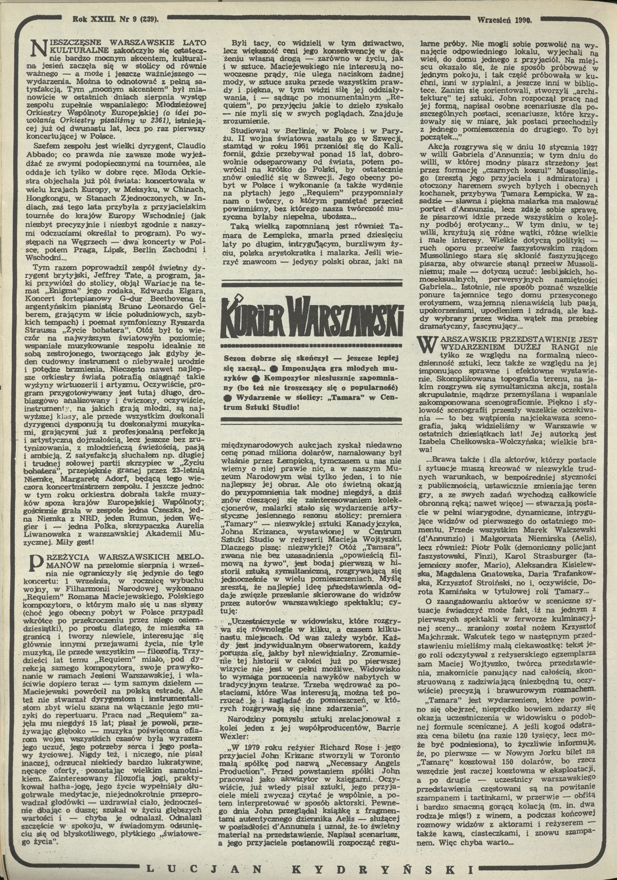 Archiwum / Kurier Warszawski nr 2362 (23/1990) 04/22 Podziel się Tytuł Kurier Warszawski Autor Lucjan Kydryński Rubryka Kurier Warszawski Artykuł z numeru 2362 (2363/1990) Data wydania 30 września 1990 Tagi "Tamara" Centrum Sztuki Studio