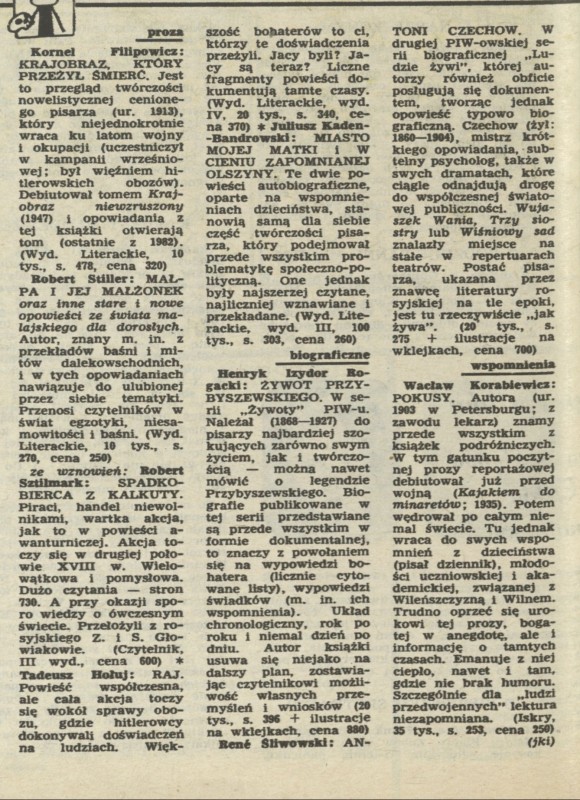 Archiwum / Czytać albo nie czytać? nr 2183 (15/1987) 89622/123969 Podziel się Tytuł Czytać, albo nie czytać Rubryka Czytać albo nie czytać? Artykuł z numeru 2183 (15/1987) Data wydania 12 kwietnia 1987