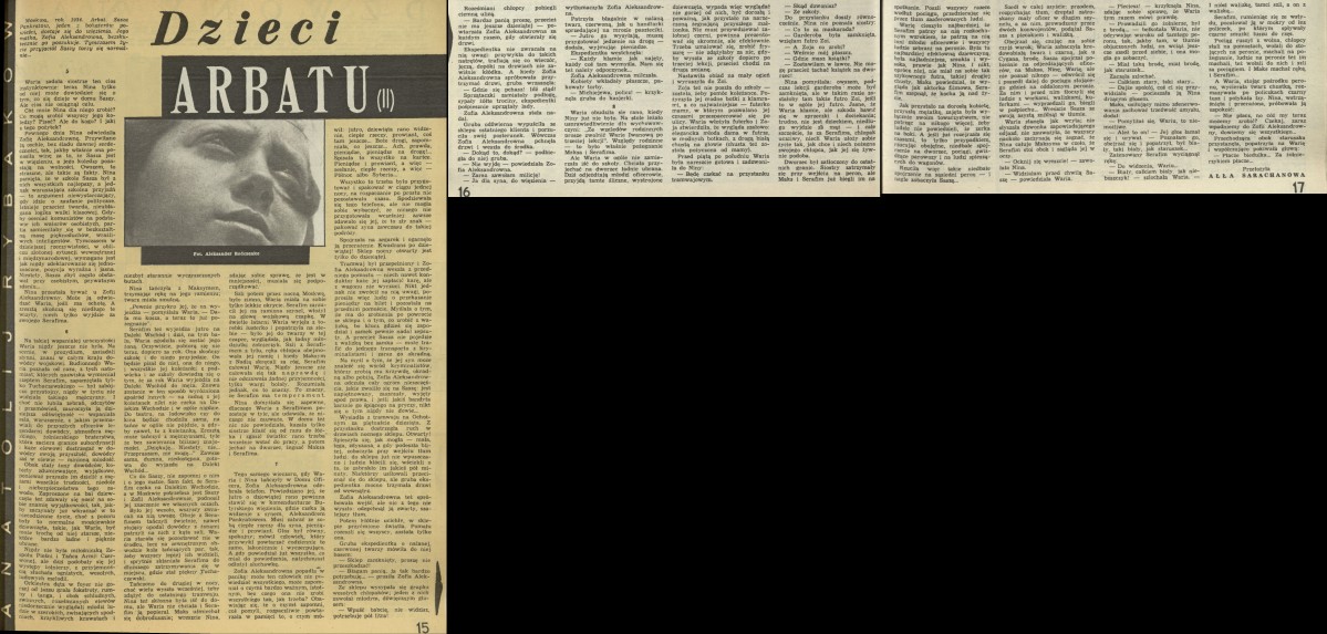 Archiwum / Proza nr 2184 (16/1987) 89664/123969 Podziel się Tytuł Dzieci Arbatu (II) Autor Anatolij Rybakow Ałła Sarachanowa Kategoria Proza Artykuł z numeru 2184 (16/1987) Data wydania 19 kwietnia 1987 Tagi literatura rosyjska młodzież