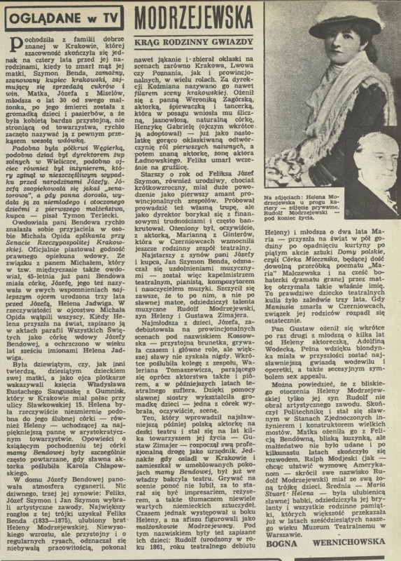 Archiwum / Kultura nr 2345 (23/1990) 93/97 Podziel się Tytuł Oglądane w TV. Modrzejewska. Krąg rodzinny gwiazdy Autor Bogna Wernichowska Kategoria Kultura Artykuł z numeru 2345 (2346/1990) Data wydania 3 czerwca 1990