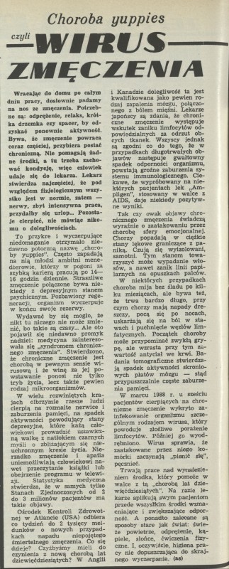 Archiwum / Nauka nr 2444 (24/1992) 101361/123969 Podziel się Tytuł Choroba yuppies czyli wirus zmęczenia Autor as Kategoria Nauka Artykuł z numeru 2444 (2445/1992) Data wydania 26 kwietnia 1992 Tagi syndrom chronicznego zmęczenia choroba zdrowie
