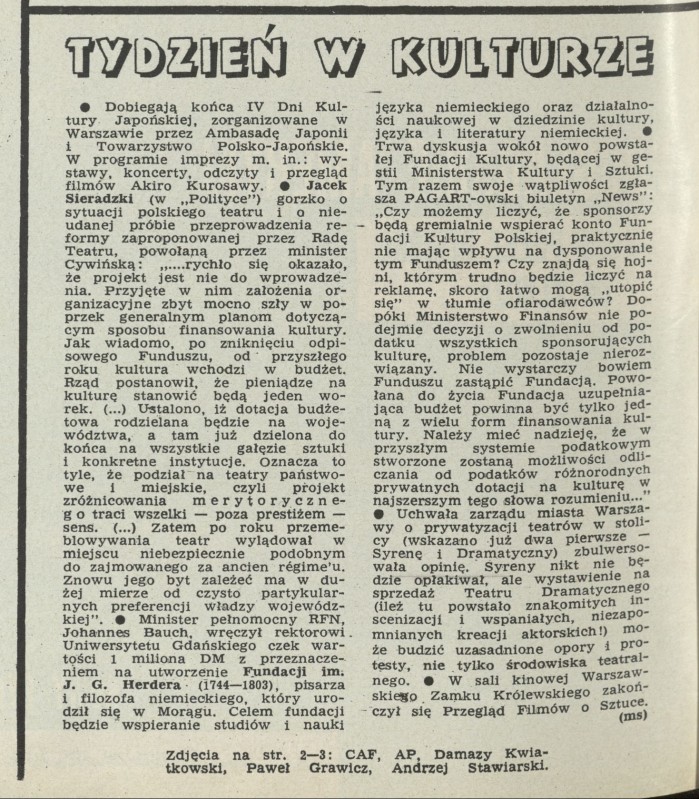 Archiwum / Tydzień w kulturze nr 2370 (23/1990) 190/2546 Podziel się Tytuł Tydzień w kulturze Autor ms Rubryka Tydzień w kulturze Artykuł z numeru 2370 (2371/1990) Data wydania 25 listopada 1990 Tagi Herder Jacek Sieradzki