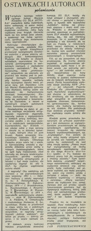 Archiwum / Różności nr 2370 (23/1990) 197/2546 Podziel się Tytuł O stawkach i autorach polemicznie Autor Jan Pieszczachowicz Kategoria Różności Artykuł z numeru 2370 (2371/1990) Data wydania 25 listopada 1990 Tagi ZLP literatura pisarstwo