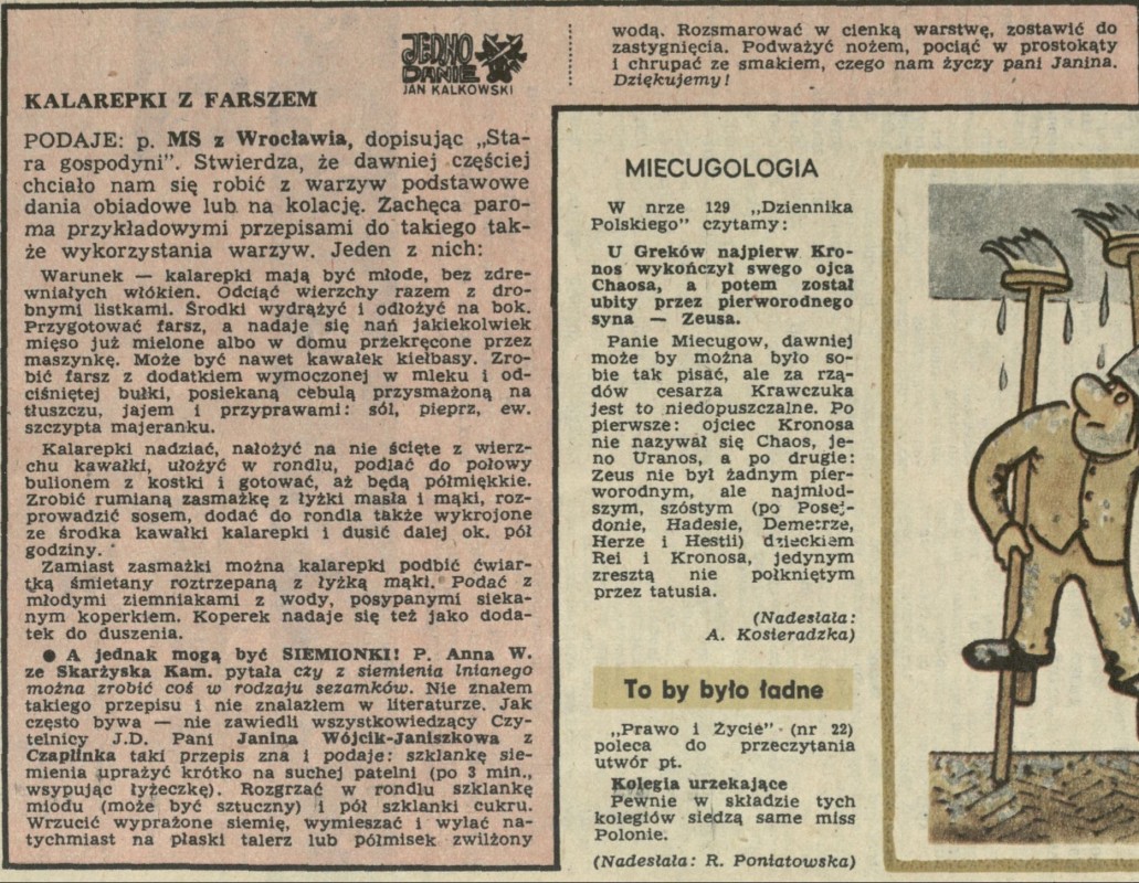 Archiwum / Jedno danie nr 2194 (26/1987) 08/10 Podziel się Tytuł Kalarepki z farszem Autor Jan Kalkowski Rubryka Jedno danie Artykuł z numeru 2194 (26/1987) Data wydania 28 czerwca 1987