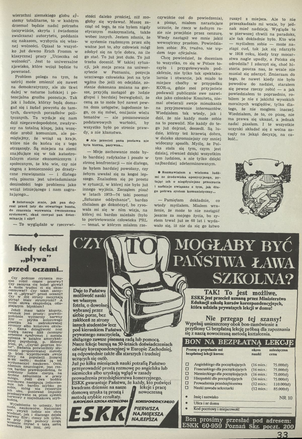 Archiwum / Różności nr specjalny 2448/1992 101533/123969 Podziel się Tytuł Kiedy tekst „pływa” przed oczami Kategoria Różności Artykuł z numeru nr specjalny 2448/1992 Data wydania 17 maja 1992