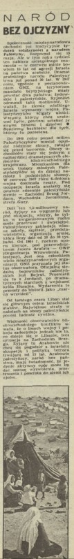 Archiwum / Artykuł nr 1928 (14/1982) 1/2 Podziel się Tytuł Naród bez ojczyzny Kategoria Artykuł Artykuł z numeru 1928 (14/1982) Data wydania 23 maja 1982 Tagi Palestyna