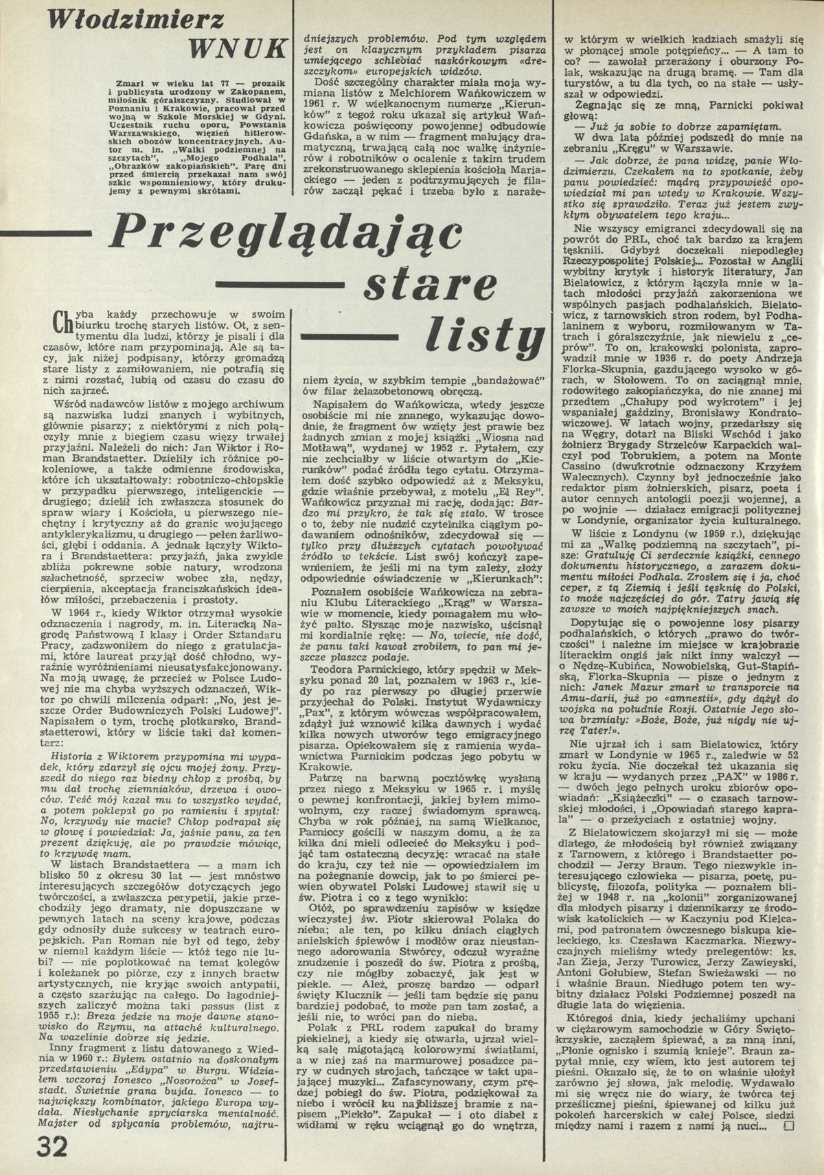 Archiwum / Felieton nr specjalny 38/1992 78/80 Podziel się Tytuł Przeglądając stare listy Autor Włodzimierz Wnuk Kategoria Felieton Artykuł z numeru nr specjalny 38/1992 Data wydania 20 września 1992