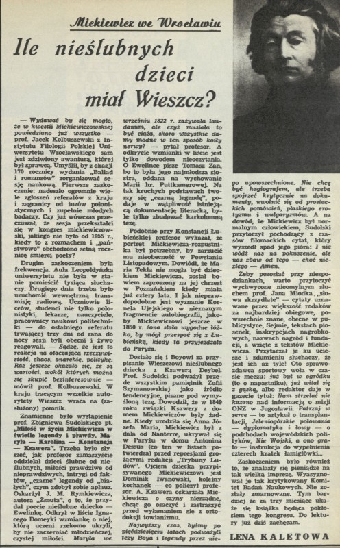 Archiwum / Artykuł nr 2480 (01/1993) 1/2 Podziel się Tytuł Ile nieślubnych dzieci miał Wieszcz? Autor Lena Kaletowa Kategoria Artykuł Artykuł z numeru 2480 (1/1993) Data wydania 3 stycznia 1993 Tagi Adam Mickiewicz dzieci Mickiewicza romantyzm Jarosław Marek Rymkiewicz Żmut