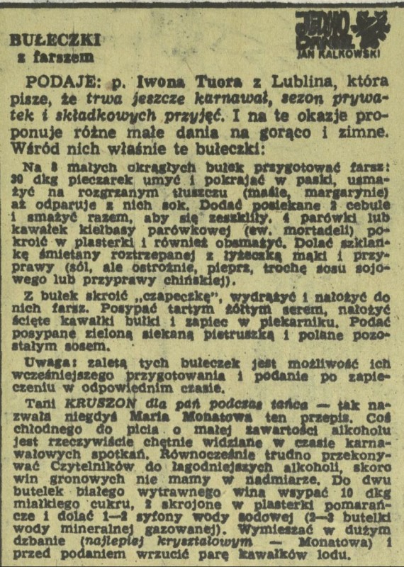 Archiwum / Jedno danie nr 2225 (05/1988) 10/10 Podziel się Tytuł Bułeczki z farszem Autor Jan Kalkowski Rubryka Jedno danie Artykuł z numeru 2225 (5/1988) Data wydania 31 stycznia 1988