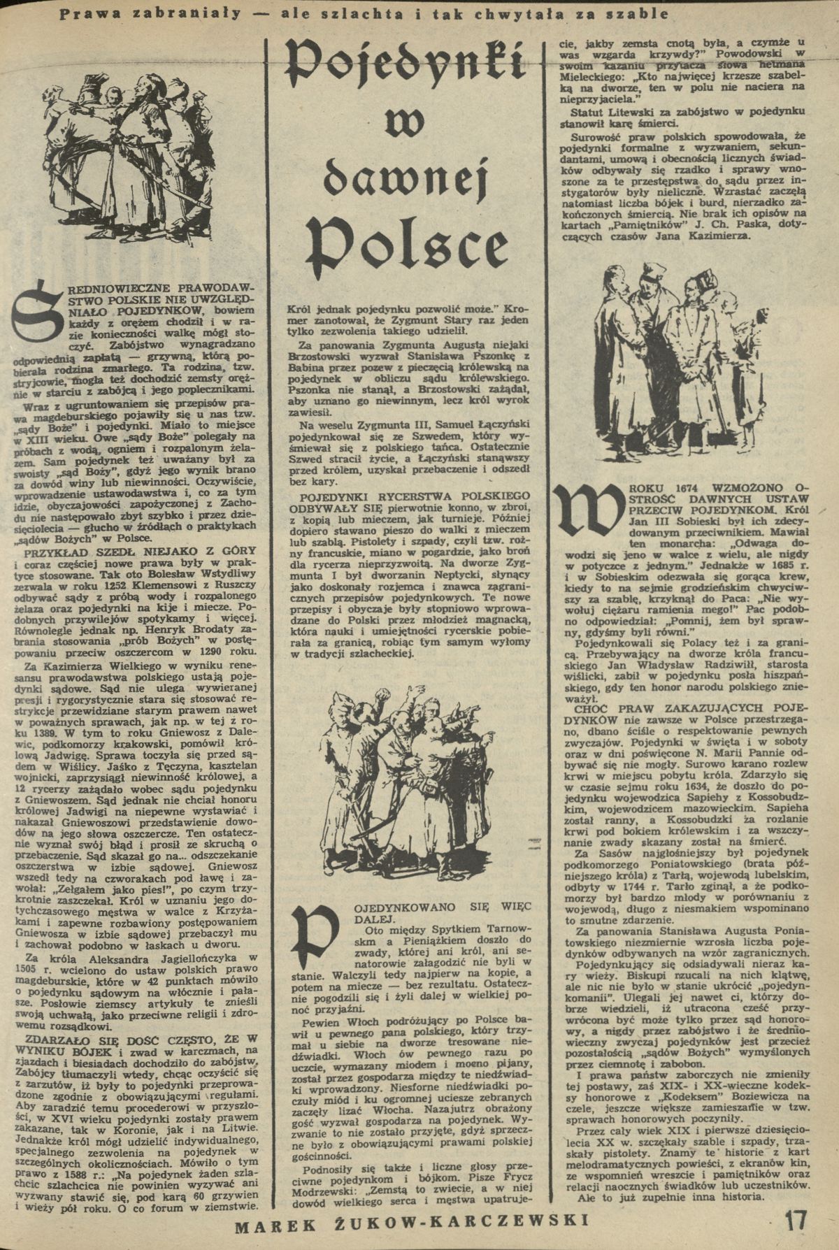 Archiwum / Artykuł nr 2204 (36/1987) 1/1 Podziel się Tytuł Pojedynek w dawnej Polsce Autor Marek Żukow-Karczewski Kategoria Artykuł Artykuł z numeru 2204 (36/1987) Data wydania 6 września 1987