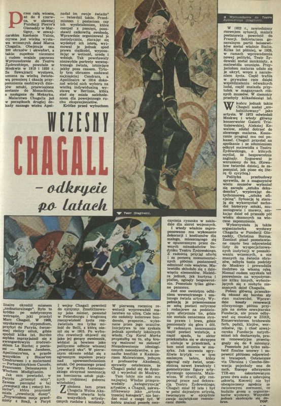 Archiwum / Artykuł nr 2392 (23/1991) 15/91 Podziel się Tytuł Wczesny Chagall – odkrycie po latach Autor Top. Kategoria Artykuł Artykuł z numeru 2392 (2393/1991) Data wydania 28 kwietnia 1991 Tagi sztuka malarstwo obraz changall