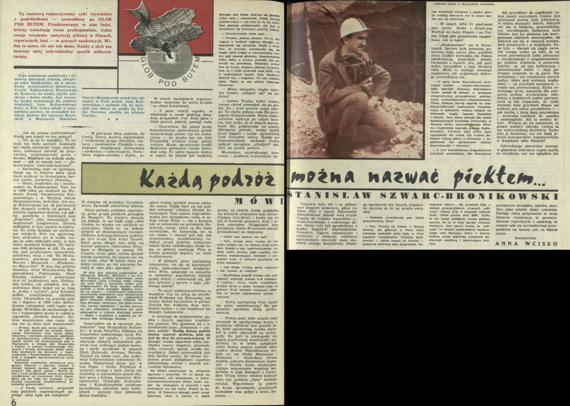 Archiwum / Wywiad nr 1929 (15/1982) 04/18 Podziel się Tytuł Każdą podróż można nazwać piekłem Autor Anna Wcisło Kategoria Wywiad Artykuł z numeru 1929 (15/1982) Data wydania 30 maja 1982 Tagi podróż antropologia stanisław szwarc-bronikowski