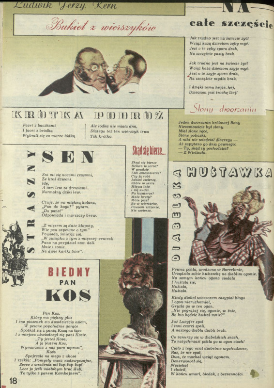 Archiwum / Poezja nr 1929 (15/1982) 1/2 Podziel się Tytuł Bukiet z wierszykiem Autor Ludwik Jerzy Kern Kategoria Poezja Artykuł z numeru 1929 (15/1982) Data wydania 30 maja 1982 Tagi wiersz krótka podróż na całe szczęście słony dworzanin skąd się bierze straszny sen diabelska huśtawka biedny pan kos