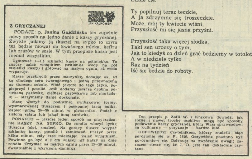 Archiwum / Jedno danie nr 1929 (15/1982) 79262/123969 Podziel się Tytuł Jedno danie z gryczanej Autor Jan Kalkowski Rubryka Jedno danie Artykuł z numeru 1929 (15/1982) Data wydania 30 maja 1982 Tagi kuchnia przepis kulinarny gastronomia jedno danie