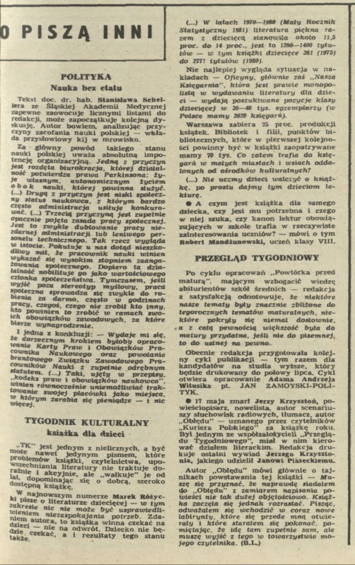 Archiwum / Co piszą inni nr 1930 (16/1982) 06/12 Podziel się Tytuł Co piszą inni Autor B. L. Rubryka Co piszą inni Artykuł z numeru 1930 (16/1982) Data wydania 6 czerwca 1982 Tagi nauka polska książka dla dzieci matura