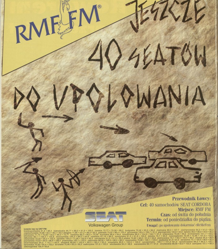 Archiwum / Reklamy nr 2779 (27/1998) 74/118 Podziel się Tytuł RMF FM Rubryka Reklamy Artykuł z numeru 2779 (2780/1998) Data wydania 27 września 1998 Tagi Seat