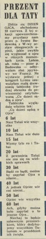 Archiwum / Różności nr 1932 (18/1982) 36/95 Podziel się Tytuł Prezent dla taty Kategoria Różności Artykuł z numeru 1932 (18/1982) Data wydania 20 czerwca 1982