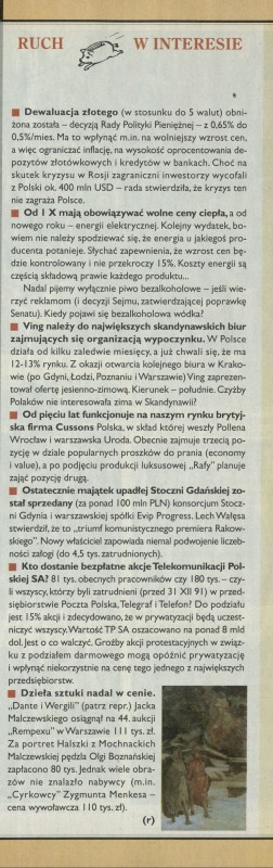 Archiwum nr 2779 (27/1998) 53/71 Podziel się Tytuł Ruch w interesie Artykuł z numeru 2779 (2780/1998) Data wydania 27 września 1998 Tagi dewaluacja ceny telekomunikacja