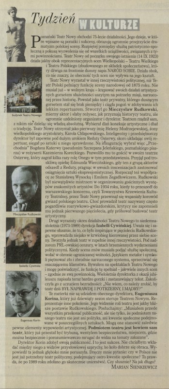 Archiwum / Tydzień w kulturze nr 2779 (27/1998) 15/44 Podziel się Tytuł Tydzień w kulturze Autor Marian Sienkiewicz Rubryka Tydzień w kulturze Artykuł z numeru 2779 (2780/1998) Data wydania 27 września 1998 Tagi Teatr Nowy Cywińska