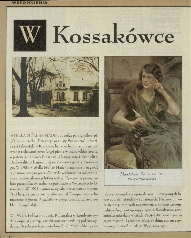 Archiwum / Artykuł nr 2779 (27/1998) 13/44 Podziel się Tytuł W Kossakówce Autor Stella Mueller-Madej Kategoria Artykuł Artykuł z numeru 2779 (2780/1998) Data wydania 27 września 1998 Tagi Kossak Kraków