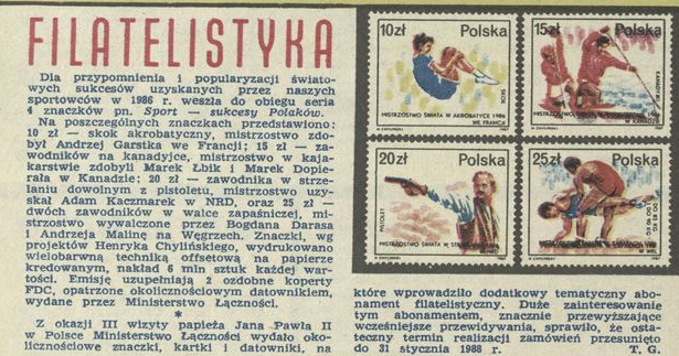 Archiwum / Filatelistyka nr 2212 (44/1987) 19/23 Podziel się Tytuł Filatelistyka Autor Tadeusz Grabikowski Rubryka Filatelistyka Artykuł z numeru 2212 (44/1987) Data wydania 1 listopada 1987 Tagi filatelistyka znaczki znaczki pocztowe hobby sport