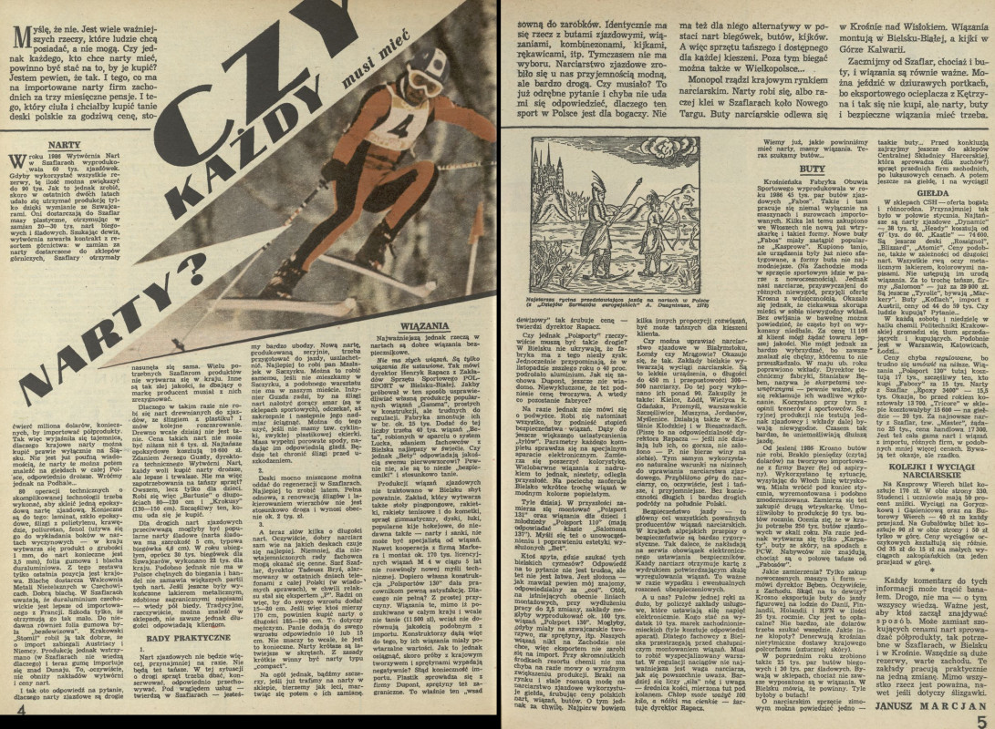 Archiwum / Sport nr 2174 (06/1987) 48/79 Podziel się Tytuł Czy każdy musi mieć narty? Autor Marcjan Janusz Rubryka Sport Artykuł z numeru 2174 (6/1987) Data wydania 8 lutego 1987 Tagi sport narty