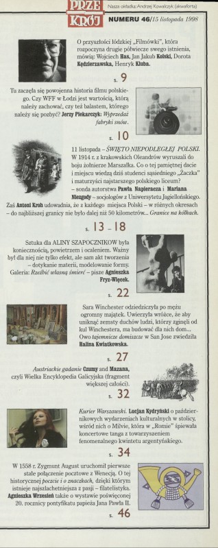 Archiwum / Przekrój tygodnia nr 2786 (27/1998) 05/117 Podziel się Tytuł Przekrój numeru 46/98 Rubryka Przekrój tygodnia Artykuł z numeru 2786 (2787/1998) Data wydania 15 listopada 1998 Tagi Has 11 listopada Mazan