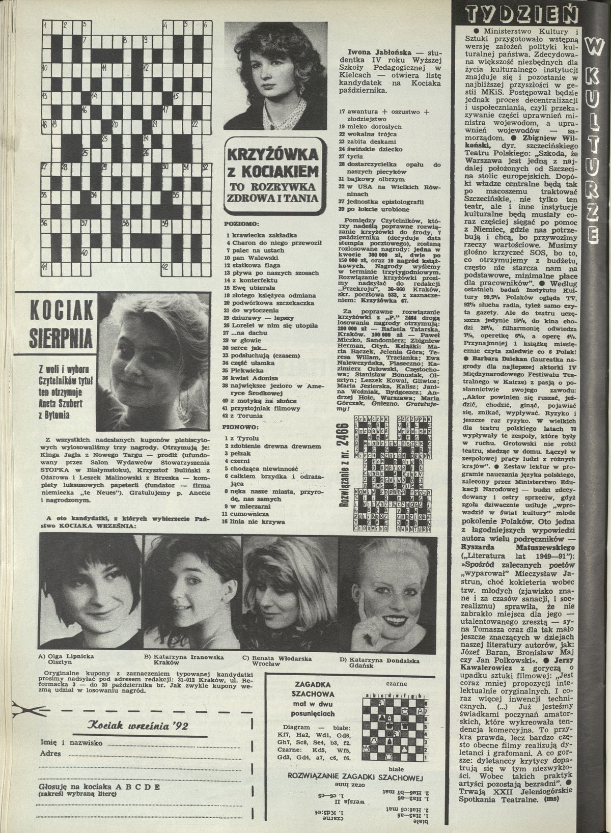 Archiwum / Konkurs nr specjalny 2468/1992 36/47 Podziel się Tytuł Kociak września '92 Rubryka Konkurs Artykuł z numeru nr specjalny 2468/1992 Data wydania 4 października 1992