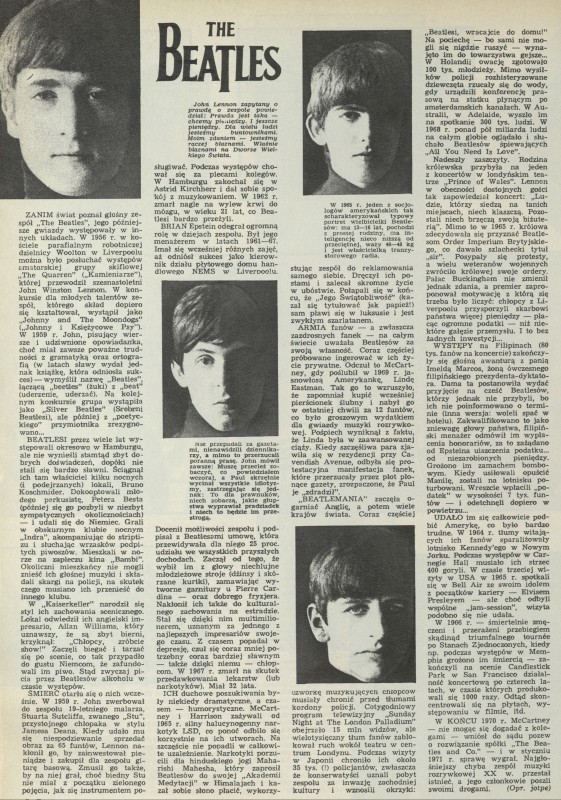 Archiwum / Kultura nr 2470 (24/1992) 102749/123969 Podziel się Tytuł The Beatles Autor jotpe Kategoria Kultura Artykuł z numeru 2470 (2471/1992) Data wydania 25 października 1992 Tagi The Beatles Beatlemania muzyka rockowa