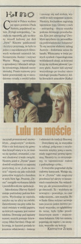 Archiwum nr 2786 (27/1998) 120223/123969 Podziel się Tytuł Kino Autor Krzysztof Żurek Artykuł z numeru 2786 (2787/1998) Data wydania 15 listopada 1998 Tagi Lulu na moście film