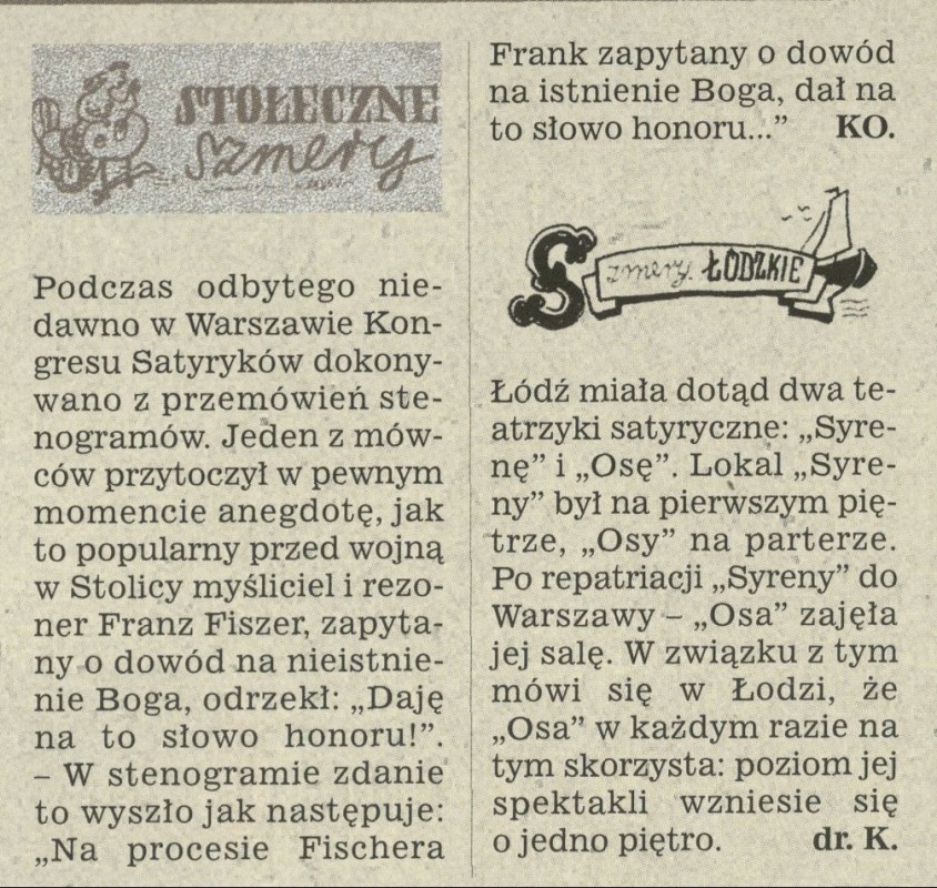 Archiwum / Szmery nr 2787 (27/1998) 01/12 Podziel się Tytuł Stołeczne szmery Autor dr.K Rubryka Szmery Artykuł z numeru 2787 (2788/1998) Data wydania 22 listopada 1998 Tagi Kongres Satyryków