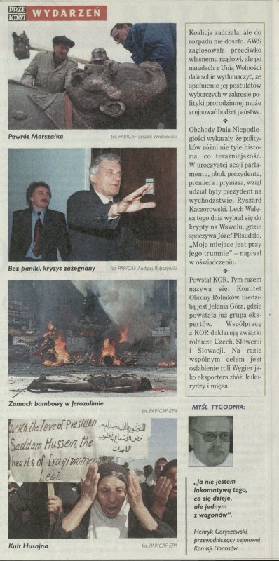 Archiwum / Przekrój tygodnia nr 2787 (27/1998) 11/238 Podziel się Tytuł Przekrój wydarzeń Rubryka Przekrój tygodnia Artykuł z numeru 2787 (2788/1998) Data wydania 22 listopada 1998 Tagi Marszałek Buzek zamach Husajn