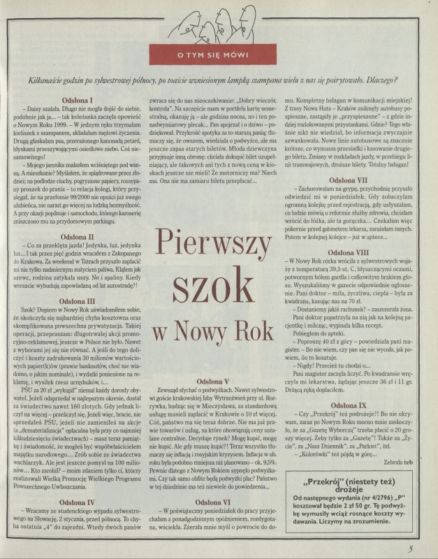Archiwum / Artykuł nr 2795 (27/1999) 86/90 Podziel się Tytuł Pierwszy szok w Nowy Rok Autor teb Kategoria Artykuł Artykuł z numeru 2795 (2796/1999) Data wydania 17 stycznia 1999 Tagi Zakopianka grypa ceny