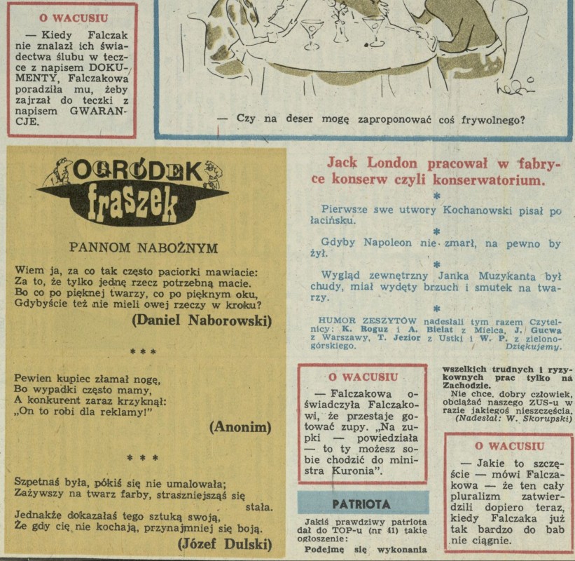 Archiwum / O Wacusiu nr 2318 (46/1989) 95510/123969 Podziel się Tytuł O Wacusiu Rubryka O Wacusiu Artykuł z numeru 2318 (46/1989) Data wydania 26 listopada 1989 Tagi Wacuś