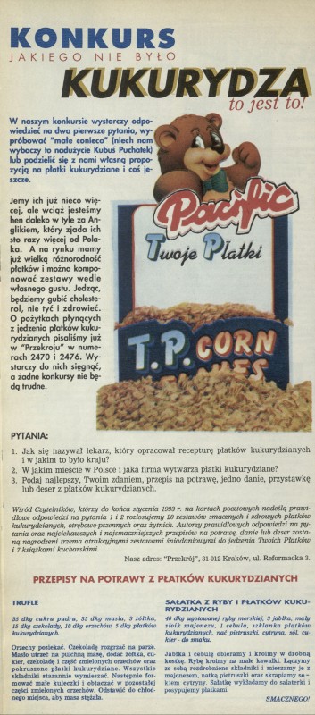Archiwum / Konkurs nr 2481 (02/1993) 103274/123969 Podziel się Tytuł Konkurs jakiego nie było. Kukurydza to jest to! Rubryka Konkurs Artykuł z numeru 2481 (2/1993) Data wydania 10 stycznia 1993 Tagi płatki pacific trufle sałatka przepis kulinarny
