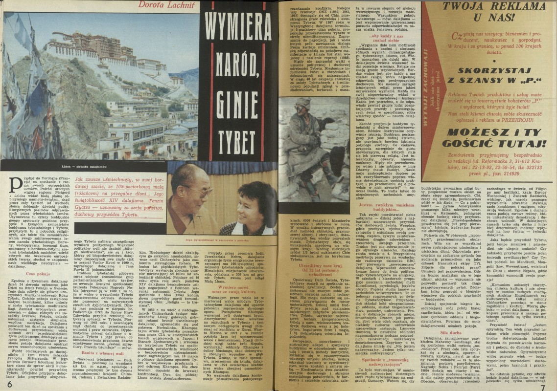 Archiwum / Reportaż nr 2415 (24/1991) 1/5 Podziel się Tytuł Wymiera naród, ginie Tybet Autor Dorota Lachnit Kategoria Reportaż Artykuł z numeru 2415 (2416/1991) Data wydania 6 października 1991 Tagi Tybet