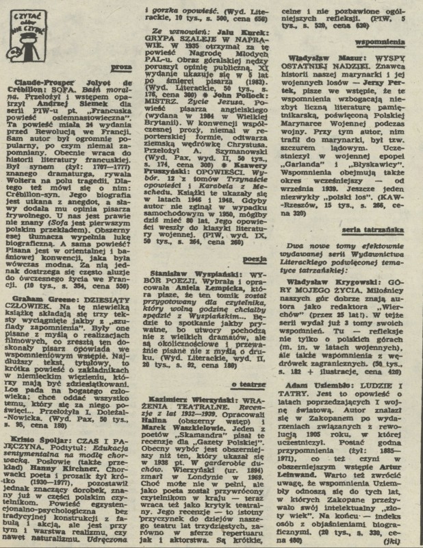 Archiwum / Czytać albo nie czytać? nr 2227 (07/1988) 1372/1866 Podziel się Tytuł Czytać albo nie czytać? Autor jki Rubryka Czytać albo nie czytać? Artykuł z numeru 2227 (7/1988) Data wydania 14 lutego 1988