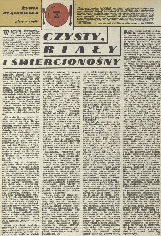Archiwum / Artykuł nr 2227 (07/1988) 91479/123969 Podziel się Tytuł Czysty, biały i śmiercionośny Autor Żywia Pląskowska Kategoria Artykuł Artykuł z numeru 2227 (7/1988) Data wydania 14 lutego 1988 Tagi cukier hipoglikemia reaktywna zdrowie medycyna