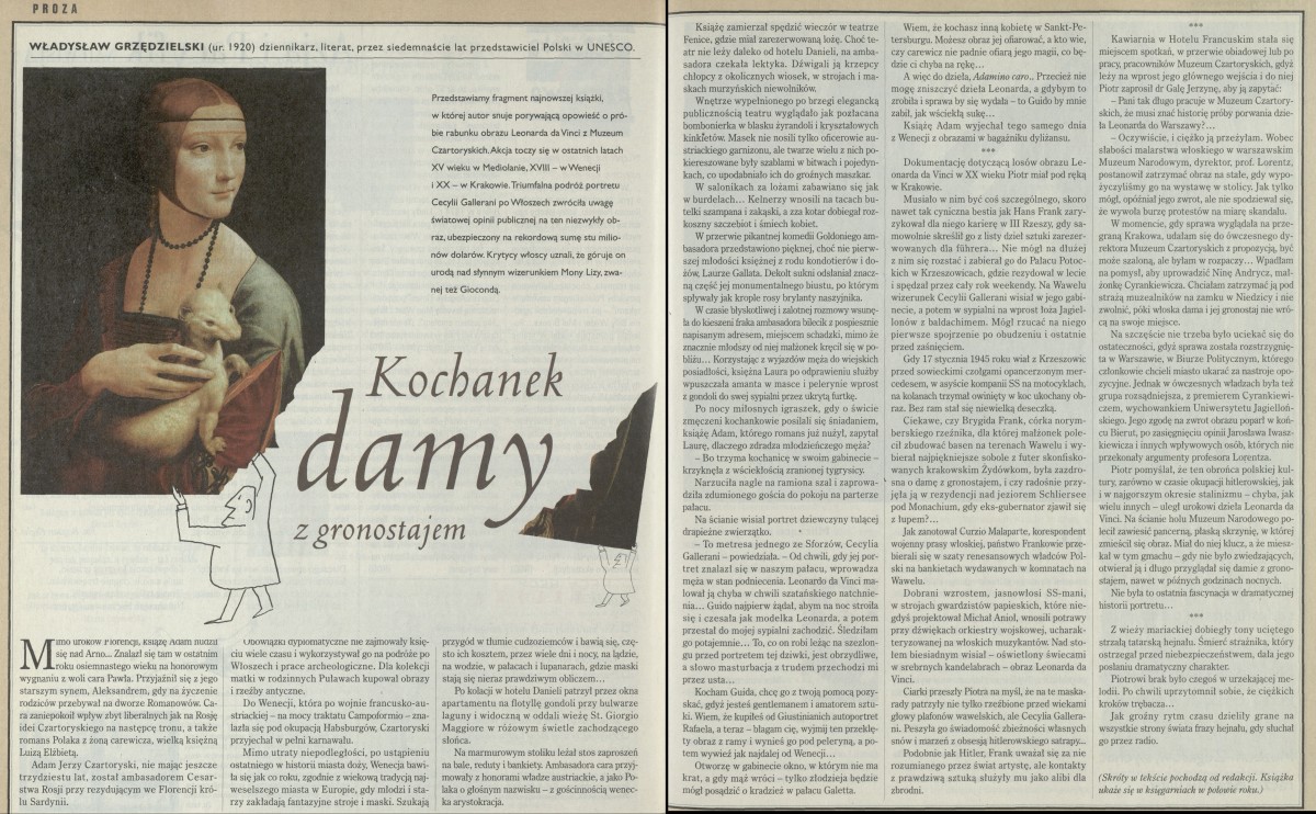 Archiwum / Proza nr 2797 (27/1999) 120850/123969 Podziel się Tytuł Kochanek damy z gronostajem Autor Władysław Grzędzielski Kategoria Proza Artykuł z numeru 2797 (2798/1999) Data wydania 31 stycznia 1999 Tagi Mona Lisa Leonardo da Vinci Muzeum Czartoryskich