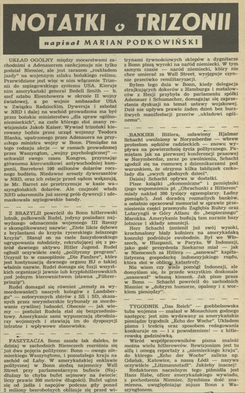Archiwum / Komentarz nr 373 (22/1952) 3/7 Podziel się Tytuł Notatki o Trizonii Autor Marian Podkowiński Kategoria Komentarz Artykuł z numeru 373 (22/1952) Data wydania 1 czerwca 1952 Tagi Hitler Brazylia